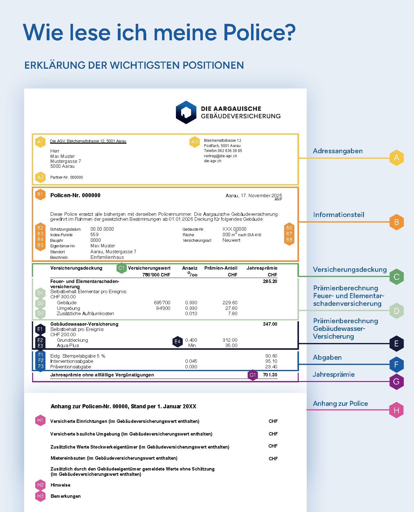 Hier erfahren Sie, wie Ihre Police aufgebaut ist und was die einzelnen Positionen bedeuten.